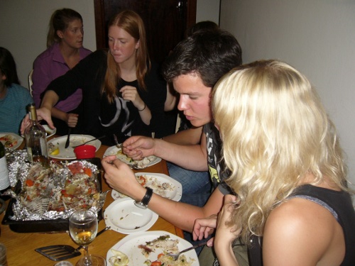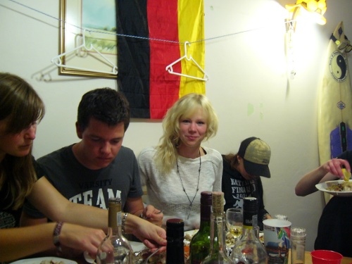 trodde faktiskt att jag skulle tycka att det var jobbigt i längden, men det är så mysigt..! kanske ska flytta in i ett kollektiv när jag kommer hem..? hehe nej men det är så tråkigt på nått sätt att man inte ens känner sina grannar där hemma… iaf – middagar var det ja.