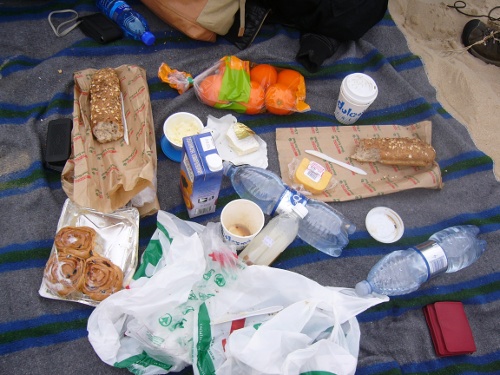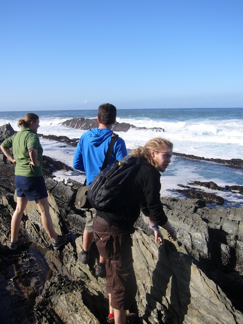 jag, daniela, paul och anna hyrde en röd bil – och så körde vi iväg (bara 170kr/dygn). sen mötte vi upp de andra för frukost på stranden i jeffreys bay.