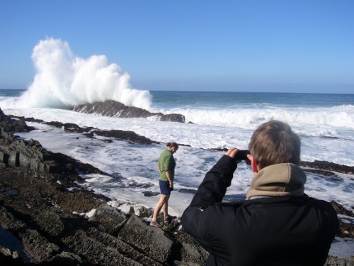 efter det packade vi ihop våra saker och åkte vidare till vandringslederna i nationalparken, men innan vi började gå klättrade vi ut på klipporna för o kolla på det grymt höga vågorna.