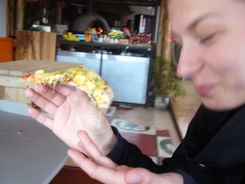 när dom andra kom tillbaka gick vi och åt pizza igen. (jag drack te – dricker te hela tiden här, så kallt inne på kvällarna).