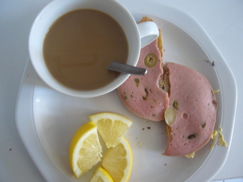 jag började känna mig lite småkrasslig redan då, så jag gick upp tidigt o åt lite citron till frukost.