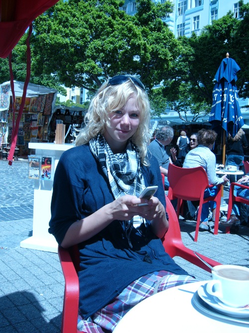 jag, daniela, paul och anna hyrde en röd bil – och så körde vi iväg (bara 170kr/dygn). sen mötte vi upp de andra för frukost på stranden i jeffreys bay.