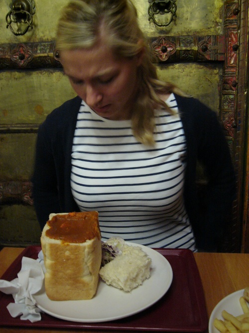 efter det åkte vi vidare till ett ställe där det skulle finnas en massa pingviner. jag och paul var sjukt hungriga, så vi gick och åt först på en.. lokal pubb..? vet inte var det var för ställe, dom hade ingen mat, men eftersom vi var så hungriga förbarmade sig ägaren över oss (alla andra ställen var stängda) och lagade till wraps åt oss. hennes första någonsin enl henne själv. hon gav mig till o med nått för min stackars hals (lät vid det här laget som en hes jazzsångerska).